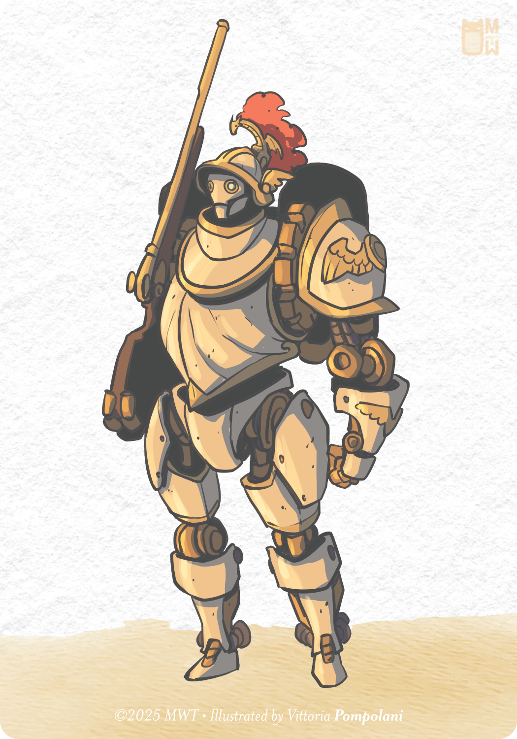 It was one of the third generation of these automatons, which were built with arcano-mechanically fashioned judgment cores. Intended to function with less direct oversight from the COG, this generation of Rifleknights quickly began “malfunctioning.” More specifically, many began acting out with their own sentience, even if it clashed with direct superior orders or carrying those orders out in unintended ways. This led to most third-gen Rifleknights being sought out and shut down.