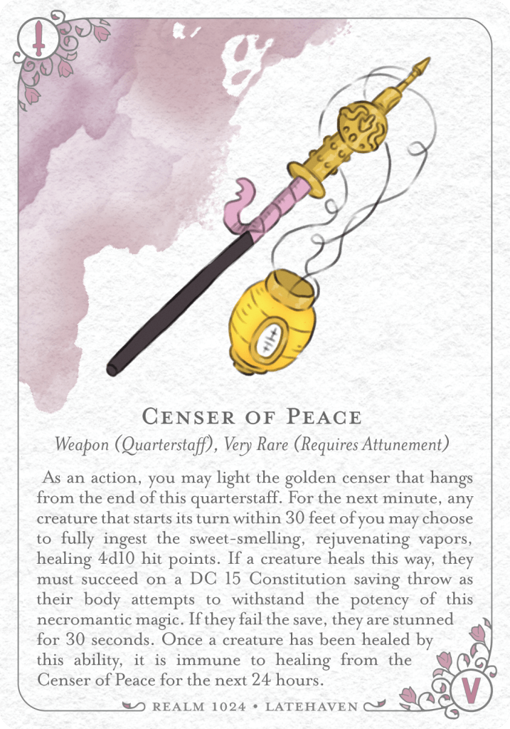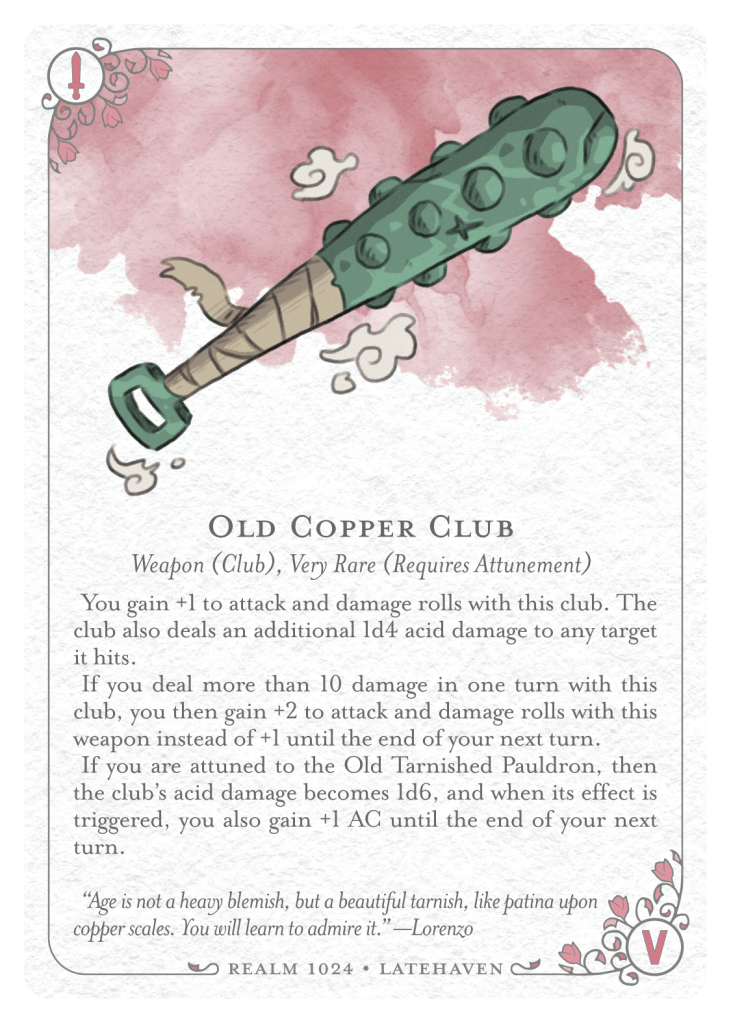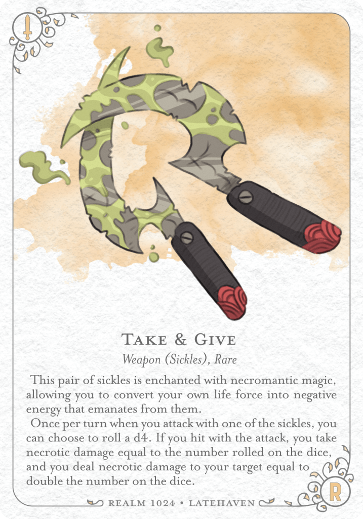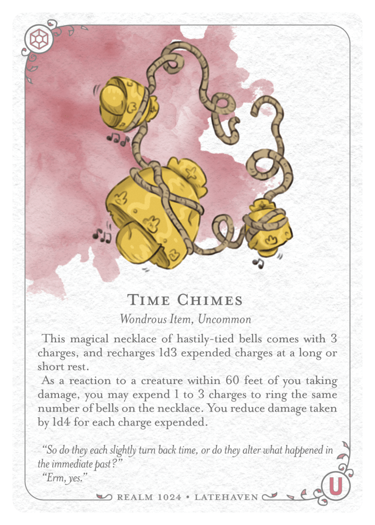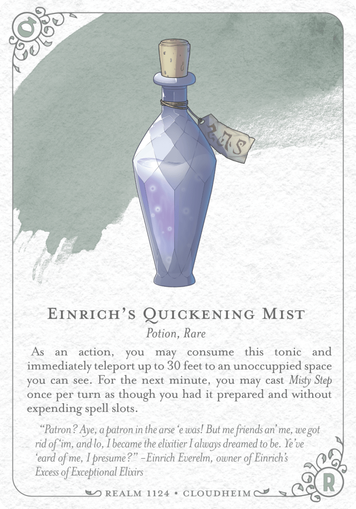 At Many Worlds Tavern, I designed and flavored hundreds of D&D 5E items drawn by a lot of super talented people. All of these were part of a monthly subscription hosted on Patreon.