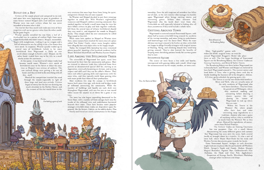 One: provide a setting, characters, quest hooks, and overall inspiration for game masters of any tabletop role-playing game.